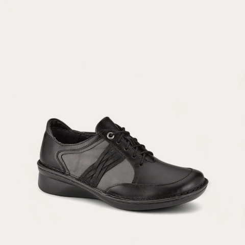 The Mezzo is a gorgeous edition to any fall wardrobe. With its upscale look and feel, this shoe will elevate any outfit you pair with it. The Mezzo is complete with smooth leather and nubuck, securing laces, and a removable footbed. Naot's removable, anatomic cork and latex footbed is wrapped in pampering suede and molds to the shape of the foot with wear. This shoe has padded technical lining for comfort, warmth and moisture absorption. The Allegro Collection features a 1.5" polyurethane sole which is extremely lightweight and durable. Our patented Naot Replacement Footbeds are also available for Mezzo.