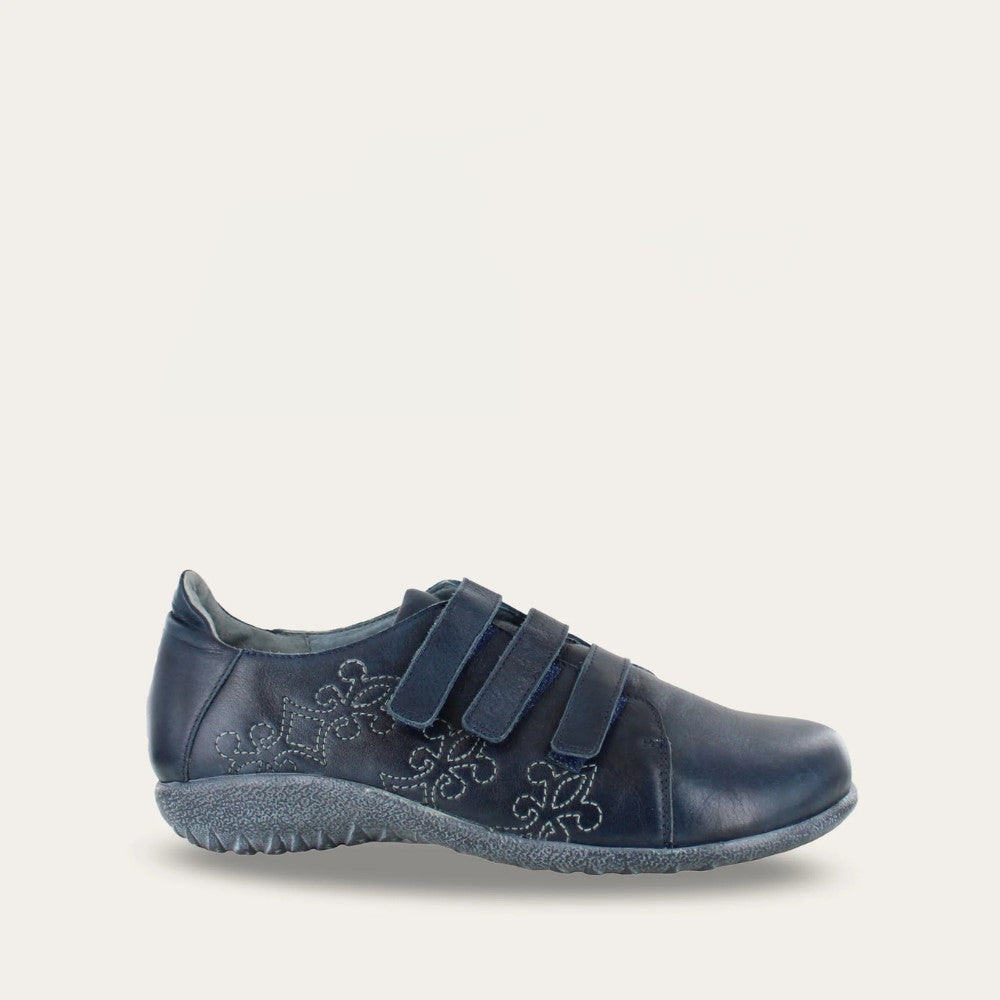 With its unique design, the Mihi features three velcro straps for easy on and off. This extra comfortable shoe has Naot's removable, anatomic cork and latex footbed, which molds to the shape of the foot with wear. The Koru Collection features a 1" polyurethane sole which is extremely lightweight, durable and slip resistant. This collection uses a hand-sewn Strobel construction making it strong and extremely flexible. American Podiatric Medical Association (APMA) Accepted for promoting good foot health. Our patented Naot Replacement Footbeds are also available for Mihi.
