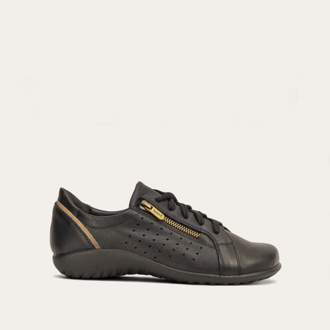 The Moko is a great, everyday lace up shoe. This style has side zippers for easy accessibility. It also features a slightly padded tongue and a padded heel cup for additional stability and comfort. Naot's removable, anatomic cork and latex footbed is wrapped in pampering suede and molds to the shape of the foot with wear. The Koru Collection features 1" polyurethane sole which is extremely lightweight, durable and slip resistant. This collection uses a hand-sewn Strobel construction making it strong and extremely flexible. American Podiatric Medical Association (APMA) Accepted for promoting good foot health.