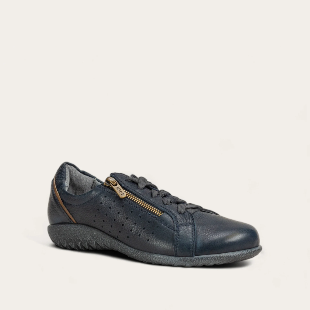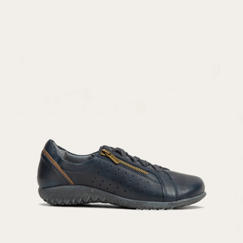 The Moko is a great, everyday lace up shoe. This style has side zippers for easy accessibility. It also features a slightly padded tongue and a padded heel cup for additional stability and comfort. Naot's removable, anatomic cork and latex footbed is wrapped in pampering suede and molds to the shape of the foot with wear. The Koru Collection features 1" polyurethane sole which is extremely lightweight, durable and slip resistant. This collection uses a hand-sewn Strobel construction making it strong and extremely flexible. American Podiatric Medical Association (APMA) Accepted for promoting good foot health.