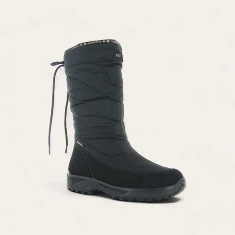 "The Montana is part of the Naot Outdoor Collection. This waterproof upper calf snow boot is perfect for even the coldest winter days with a 4 layer weather tech lining that is rated -20C/-4F. The slip resistant rubber sole features an innovative on/off OC Grip System with stainless steel studs allowing you to walk comfortably on icy surfaces. The Montana features Naot's removable anatomic cork and latex footbed and a side zipper for accessibility.