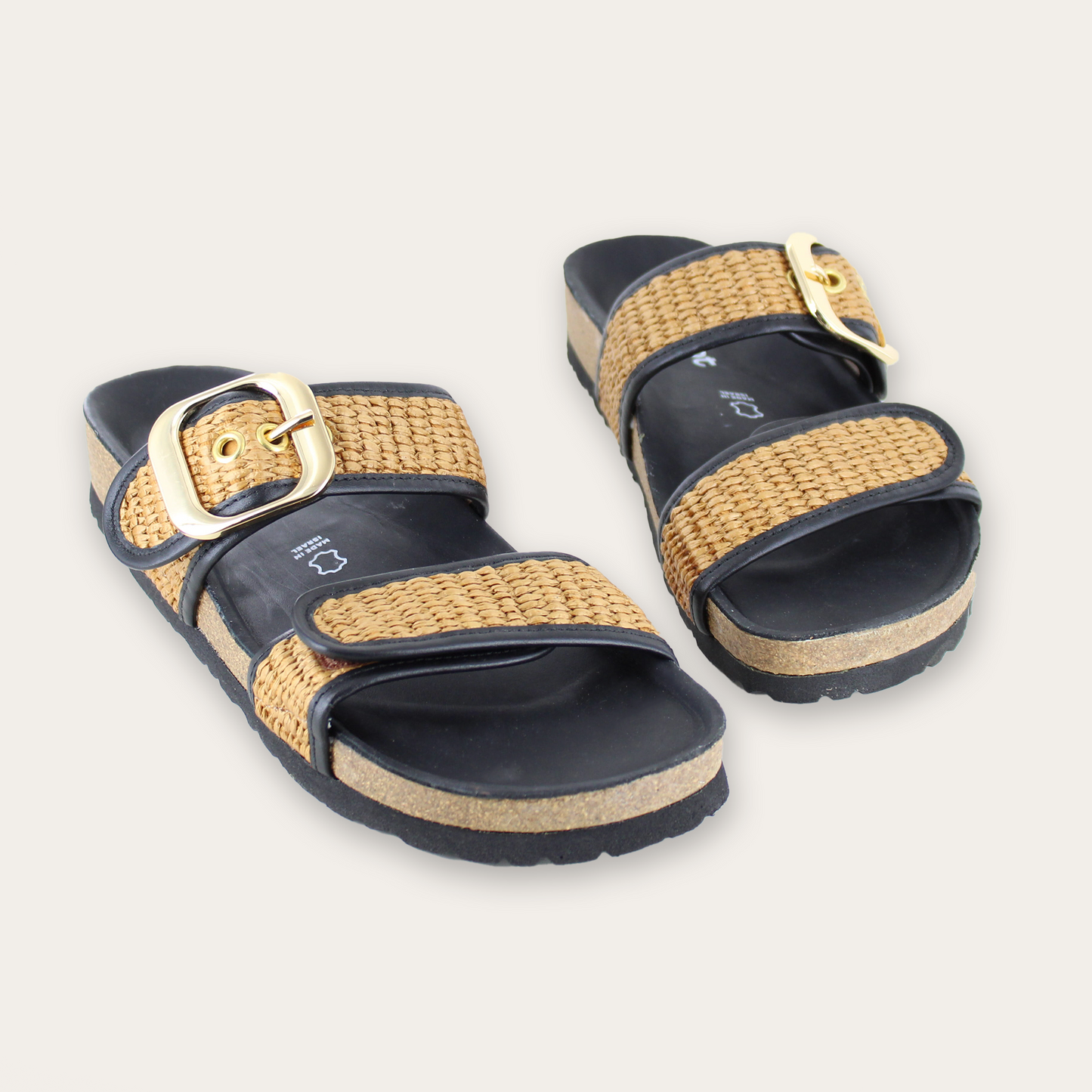 $149.95 Latte Brown Leather / Latte / Ivory Raffia -