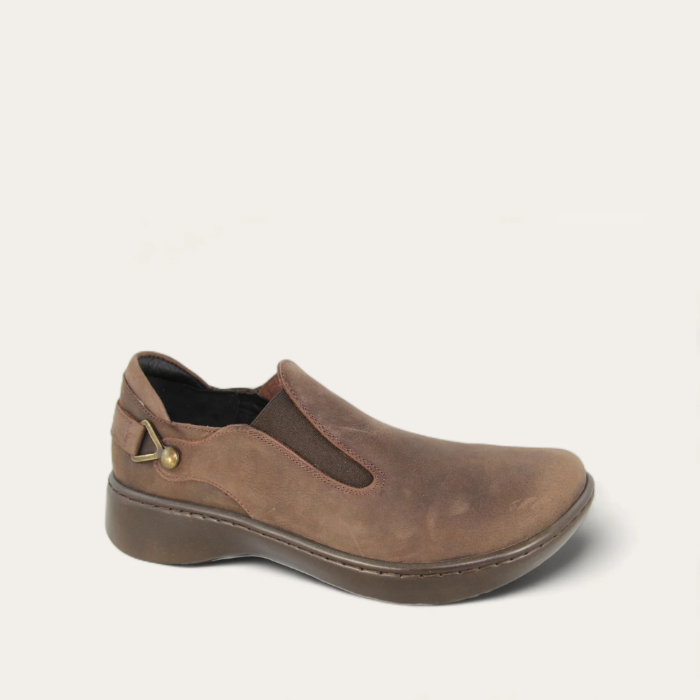 The Naot Nautilus is a great everyday shoe with a contrasting back leather strap and rivet accents. This style has a zipper for accessibility and gore for adjustability. The Nautilus has a padded heel cup for comfort and support. Naot's removable, anatomic cork and latex footbed is wrapped in pampering suede and molds to the shape of the foot with wear. The Shell Collection features a 1.5" polyurethane sole which is extremely lightweight, durable and slip resistant. Our patented Naot Replacement Footbeds are also available for Nautilus.
