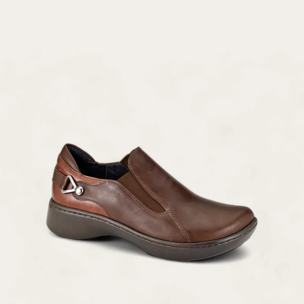 The Naot Nautilus is a great everyday shoe with a contrasting back leather strap and rivet accents. This style has a zipper for accessibility and gore for adjustability. The Nautilus has a padded heel cup for comfort and support. Naot's removable, anatomic cork and latex footbed is wrapped in pampering suede and molds to the shape of the foot with wear. The Shell Collection features a 1.5" polyurethane sole which is extremely lightweight, durable and slip resistant. Our patented Naot Replacement Footbeds are also available for Nautilus.