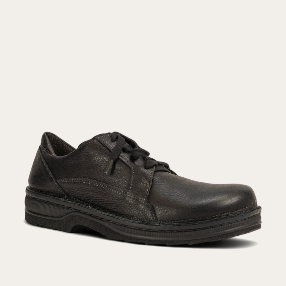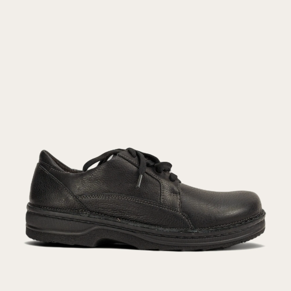 Naot Olaf is a lace up shoe with a padded tongue and padded heel cup for extra comfort and support. This style features padded technical lining at the front which provides comfort and absorbs moisture. Naot's removable, anatomic cork and latex footbed is wrapped in pampering suede and molds to the shape of the foot with wear. The Men's Scandinavian Collection features a 1.5" polyurethane sole which is extremely lightweight, durable and slip resistant American Podiatric Medical Association (APMA) Accepted for promoting good foot health. Our patented Naot Replacement Footbeds are also available for Olaf.