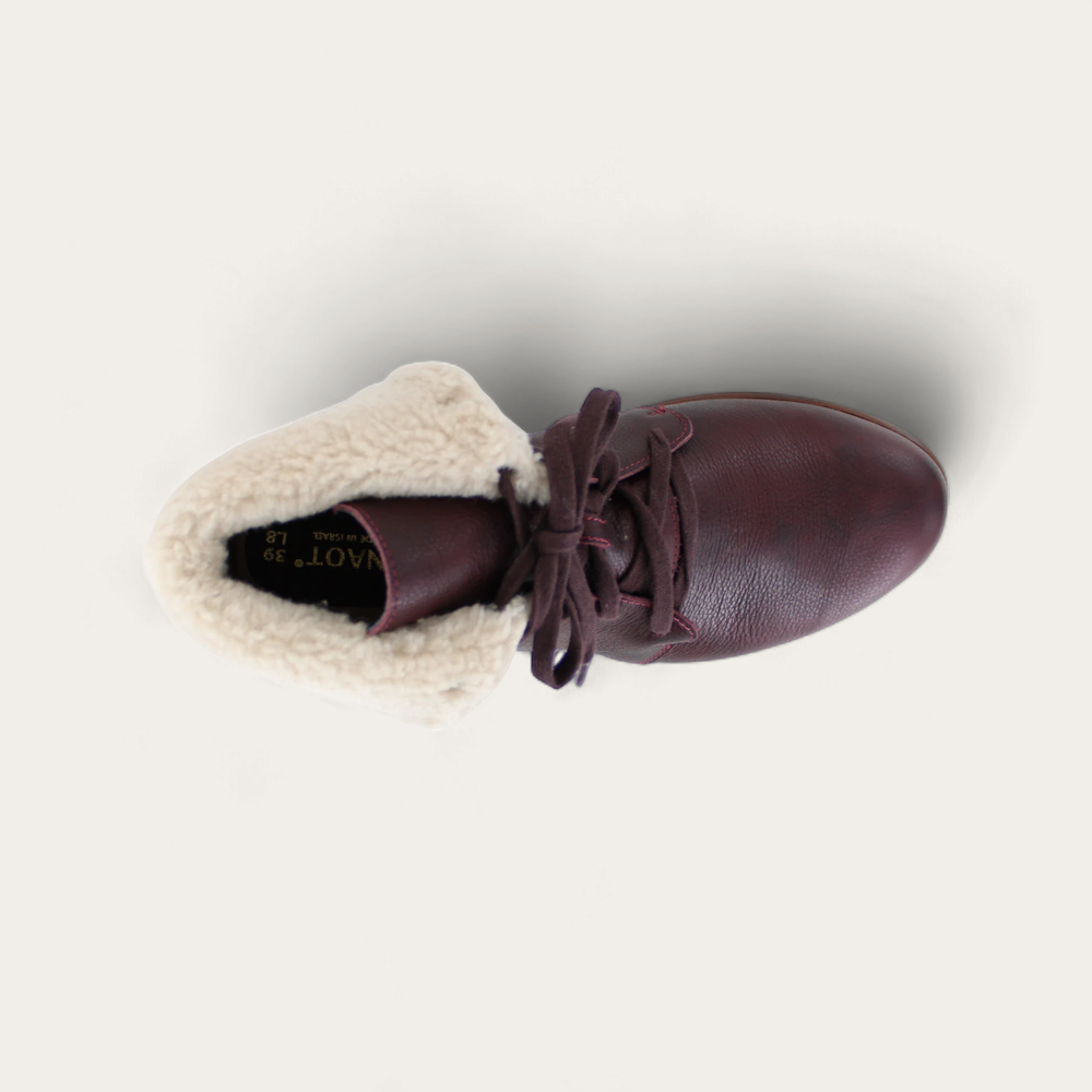 Smooth leather, faux shearling cuff and lace up closure that make these ankle boots irresistible. The Pali is a stylish bootie and it features Naot's removable, anatomic cork and latex footbed for all day comfort. The Aura Collection features a 1.5" polyurethane sole with a metal shank which is extremely lightweight, durable and abrasive to prevent slipping. This collection uses a hand-sewn Strobel construction making it strong and extremely flexible. Our patented Naot Replacement Footbeds are also available for Pali.