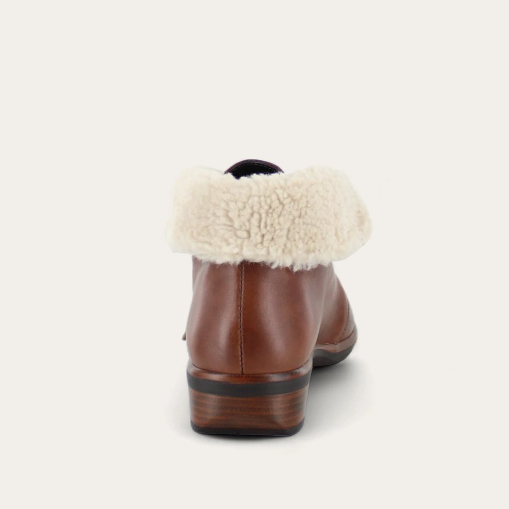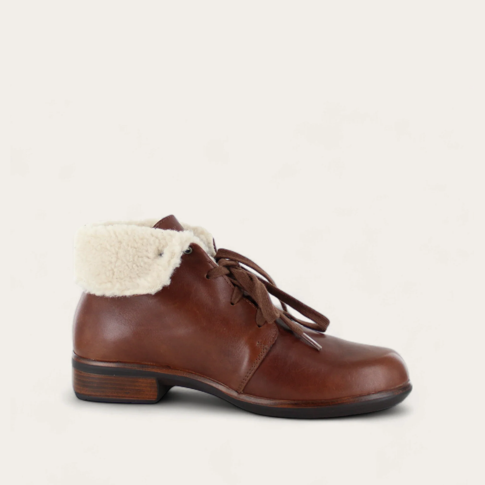 Smooth leather, faux shearling cuff and lace up closure that make these ankle boots irresistible. The Pali is a stylish bootie and it features Naot's removable, anatomic cork and latex footbed for all day comfort. The Aura Collection features a 1.5" polyurethane sole with a metal shank which is extremely lightweight, durable and abrasive to prevent slipping. This collection uses a hand-sewn Strobel construction making it strong and extremely flexible. Our patented Naot Replacement Footbeds are also available for Pali.