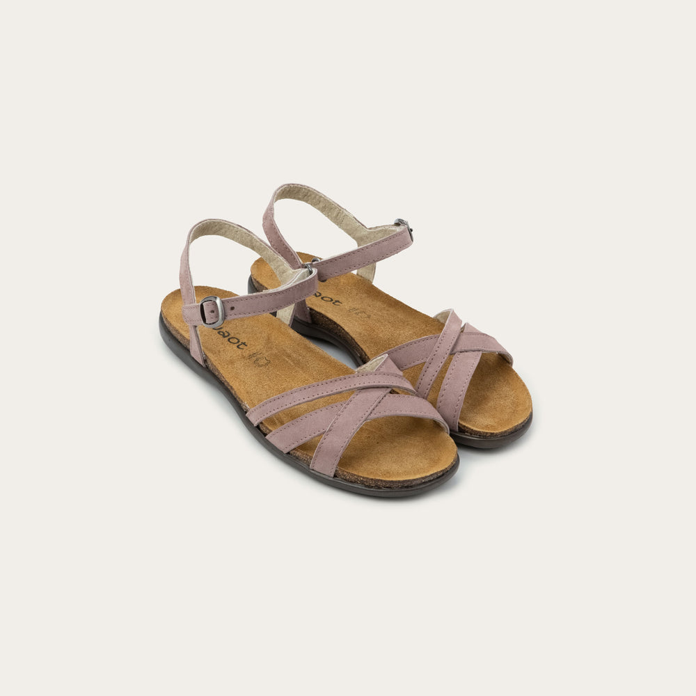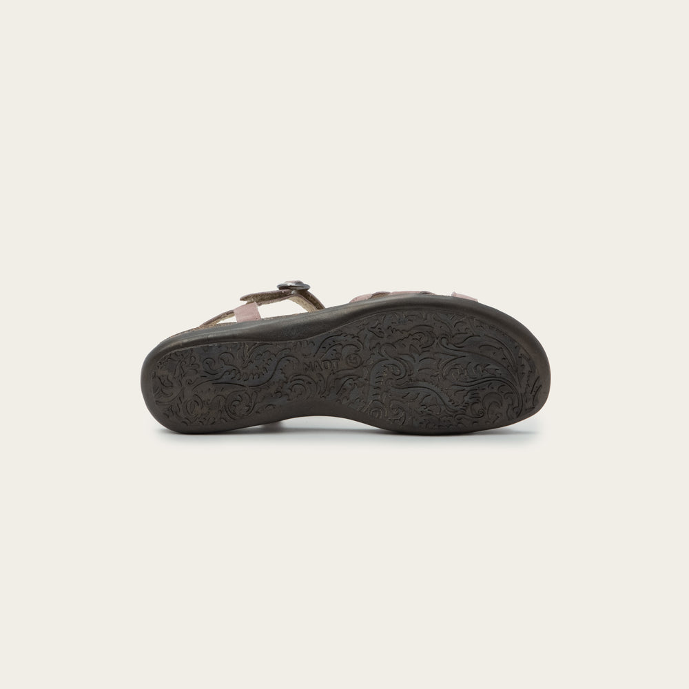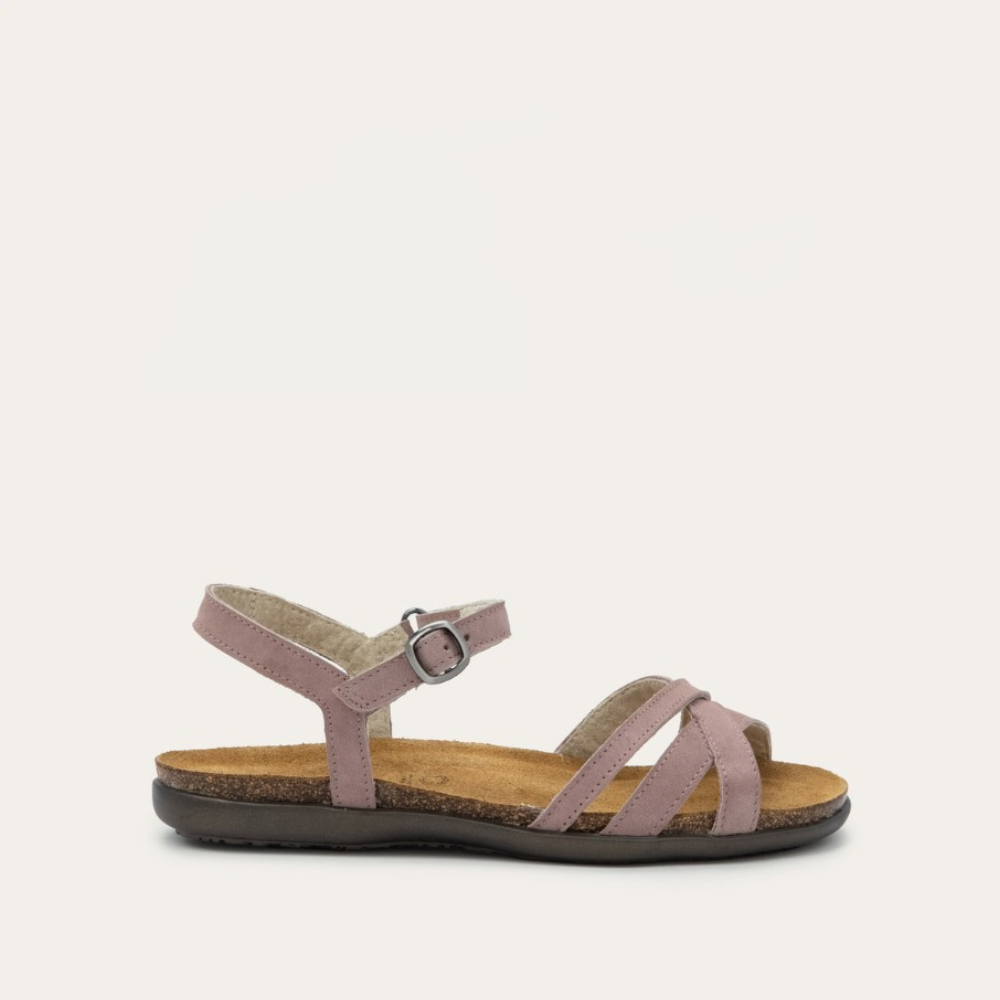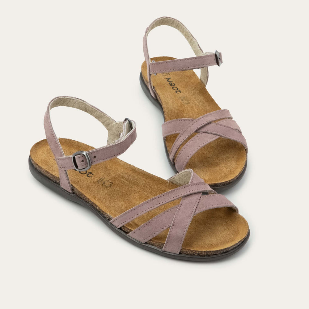 Feminine and versatile, the Patricia is a must have summer sandal. It is featuring a hook and loop ankle strap for adjustability and easy wear. Naot's anatomic cork and latex footbed is wrapped in a pampering suede and molds to the shape of the foot with wear. The Flat Elegant Collection features a .75" TPR sole.