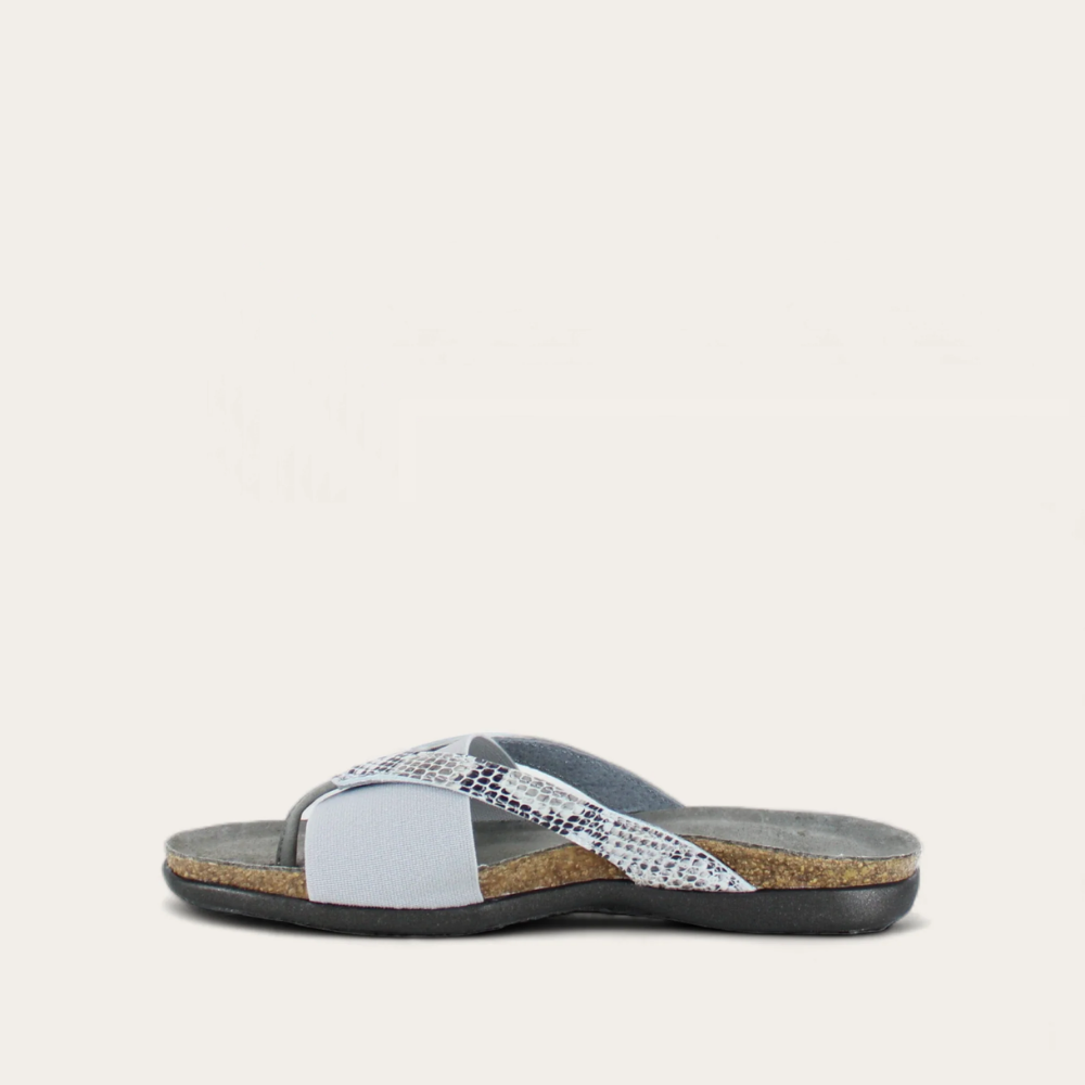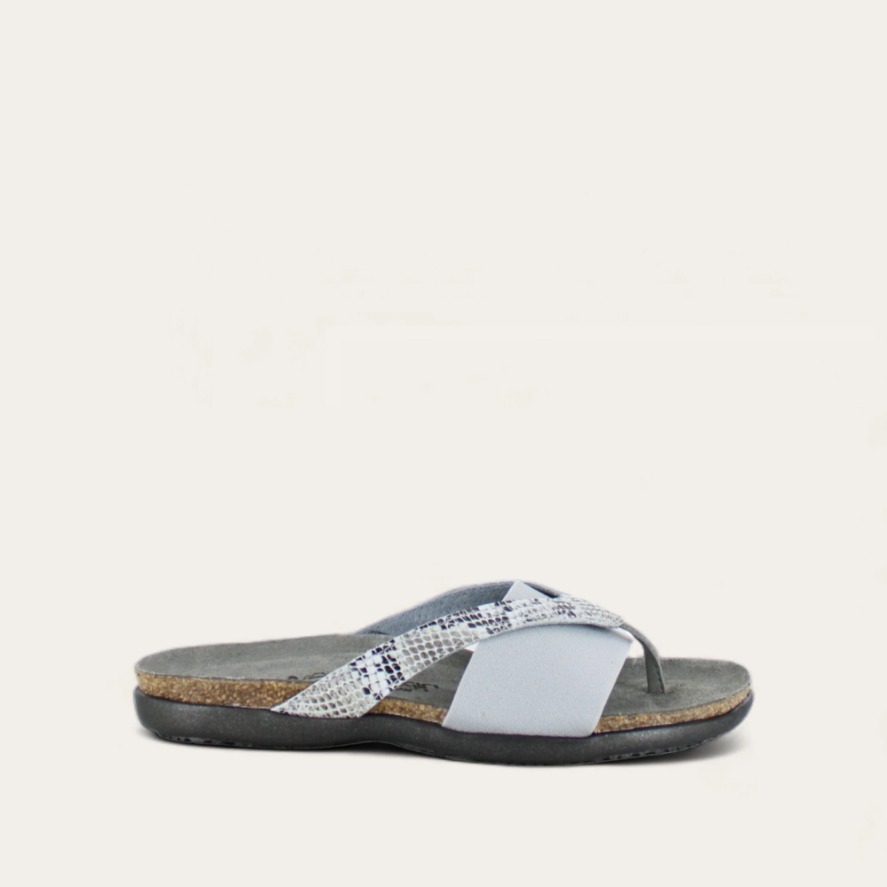 It's hard to find sandals with good arch support that will stay securely on narrow feet. The combination of thong and fabric band work perfectly together. This is my 4th pair of this style from Naot. I hope you will keep similar styles available.