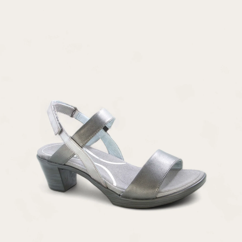 Naot Polite is the perfect heel. This style features a padded backstrap with hook and loop closure for adjustability. Naot's anatomic cork and latex footbed is wrapped in pampering suede and molds to the shape of the foot with wear. The Supreme Collection features a metal shank and provides the look of a 2.25" heel without the feel.