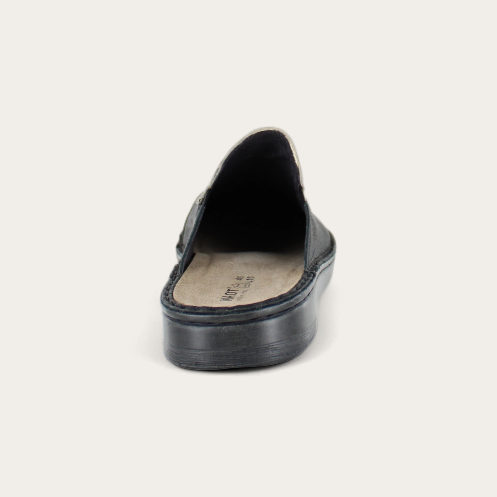 The Procida is a great mule for transitional wear. The contrasting suede and leather design make this versatile clog a must. American Podiatric Medical Association (APMA) Accepted for promoting good foot health. Our patented Naot Replacement Footbeds are also available for Procida.