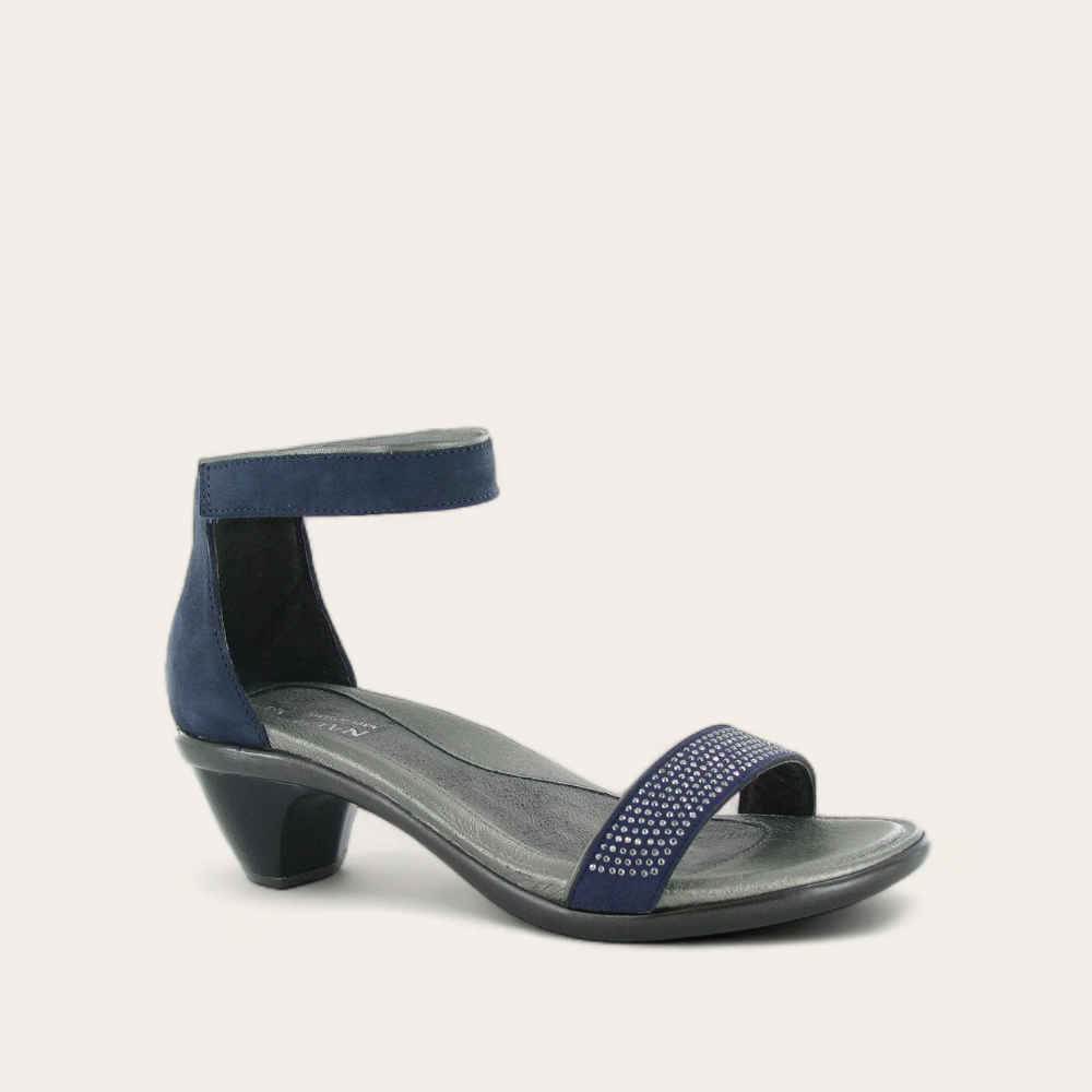 The Progress will make you stand out! This style features delicate rivet accents on a padded front strap. The Progress has a padded heel cup and hook and loop ankle strap. Naot's anatomic cork and latex footbed is wrapped in leather with a microfiber center to prevent slipping and molds to the shape of the foot with wear. The Avantgarde Collection features a TPR sole with a metal shank. This sole offers the look of a 2" heel without the feel.