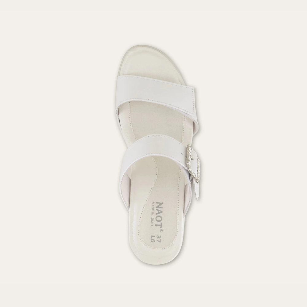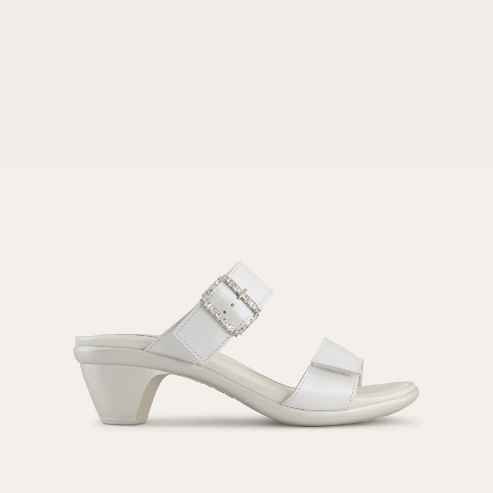 Recent is a stylish sandal that is sure to catch attention. This captivating style showcases a jeweled buckle on a padded front strap, and a hook and loop ankle strap for a secure and personalized fit. Part of the Avantgarde Collection, this sandal boasts a TPR sole with a metal shank, providing the illusion of a 2" heel without sacrificing comfort.