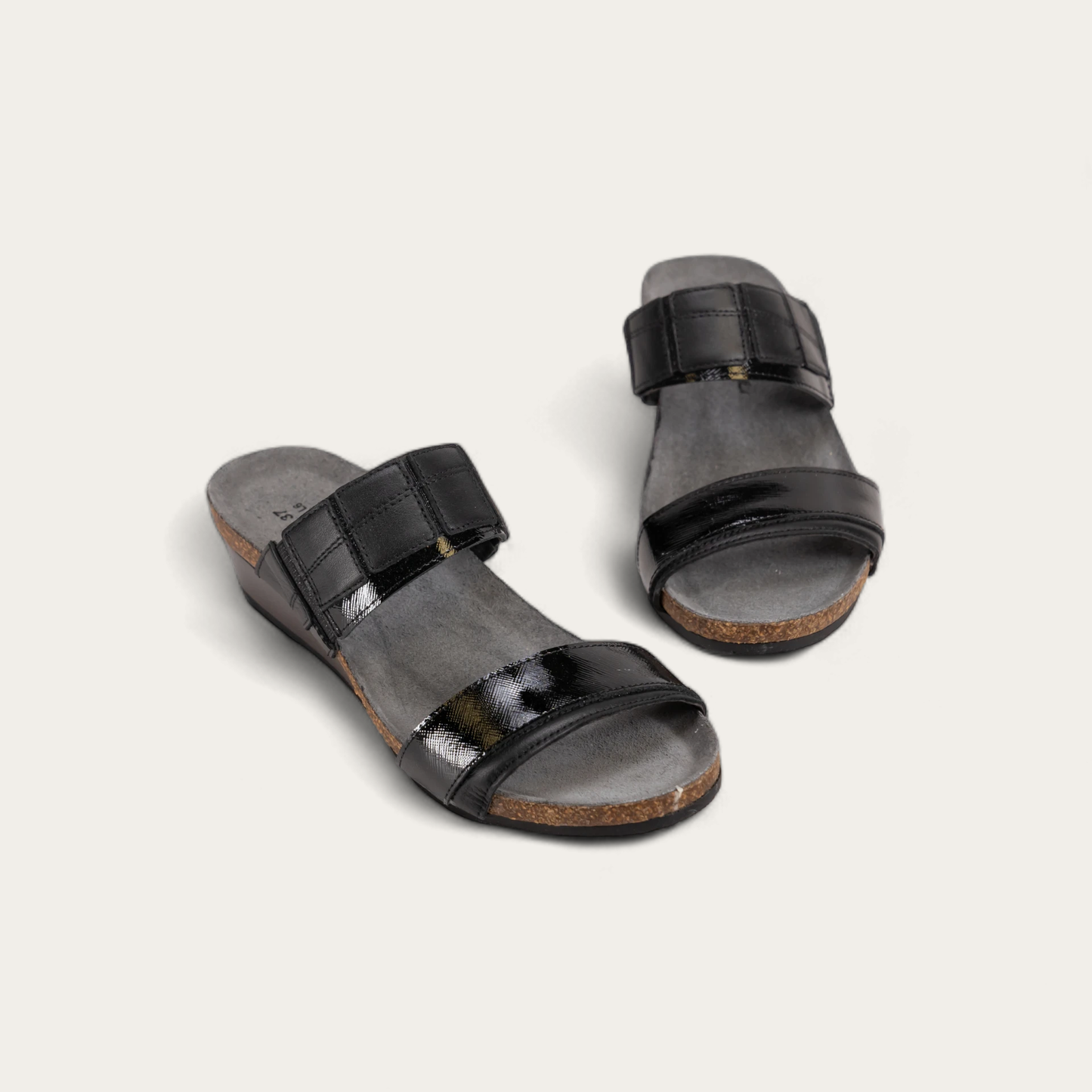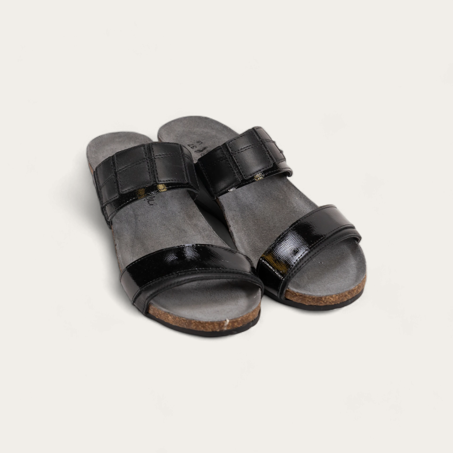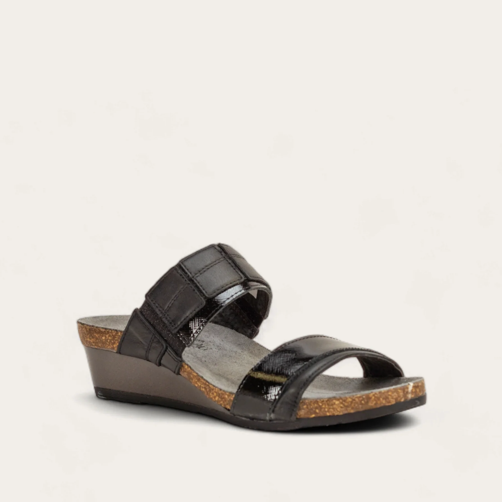 The Royalty is an easy dressy slide sandal with a sleek design. Naot's anatomic cork and latex footbed is wrapped in a pampering suede and molds to the shape of the foot with wear.