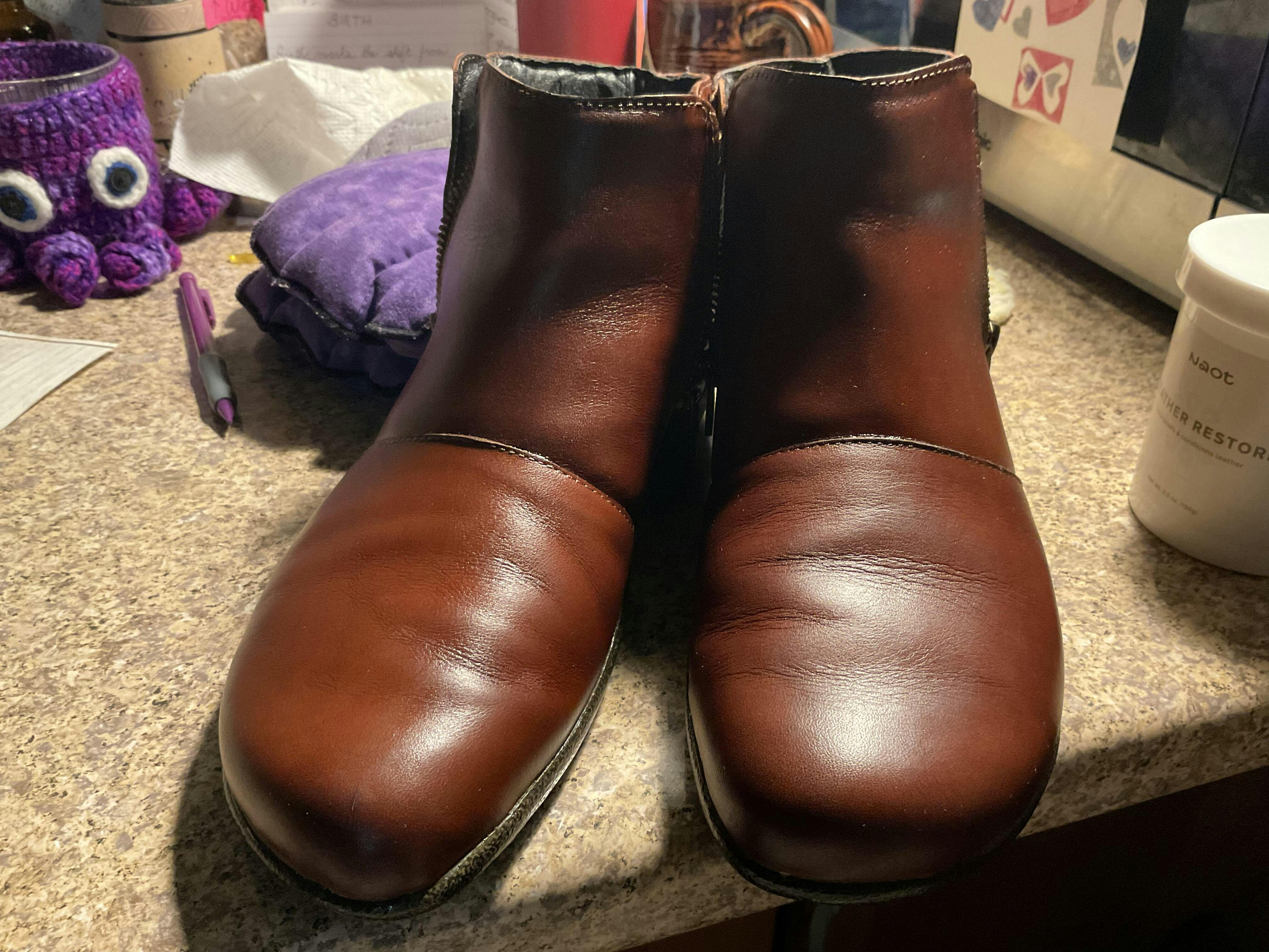 Funny - I got this request for review just as I was applying some of the Leather Restore on my boots after I’ve had them a couple of weeks. So satisfying to take care of good leather.Like the sponge applicator and wiping excess off after a few minutes left such a lovely shine. I used the waterproofer right when I got them