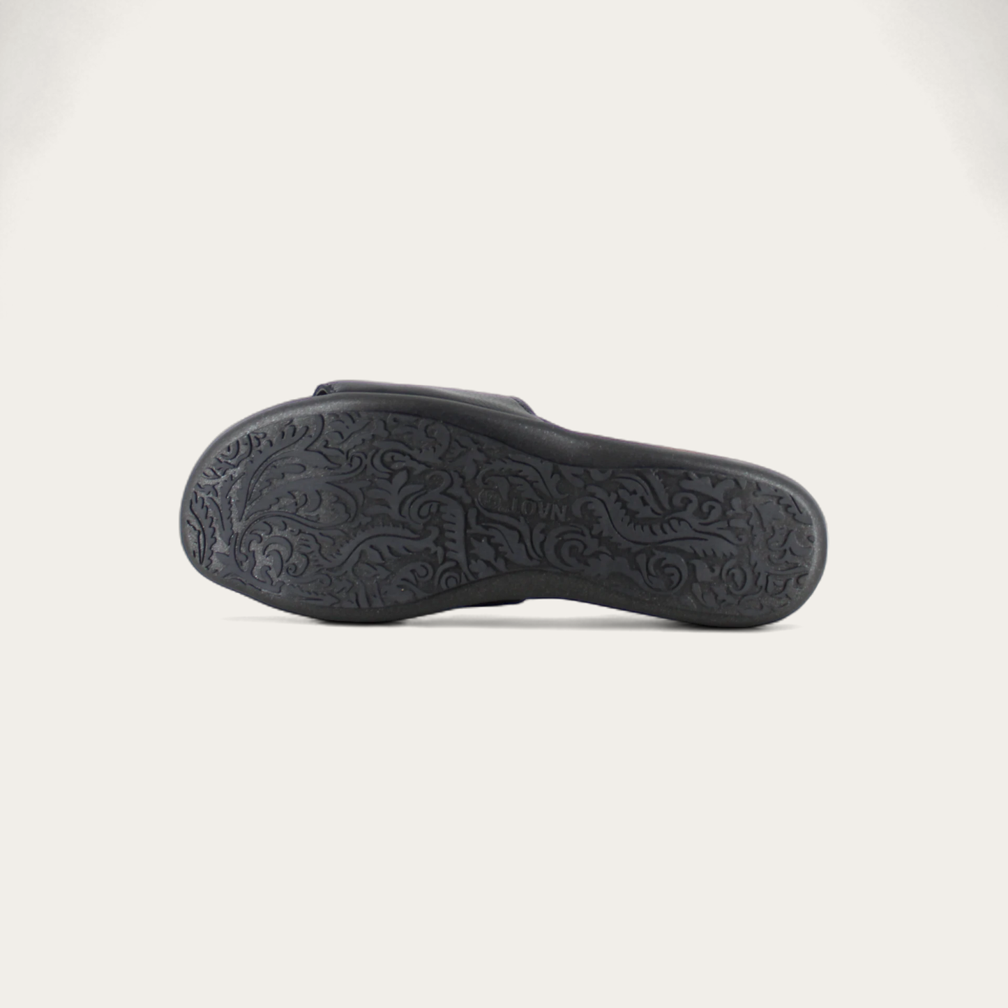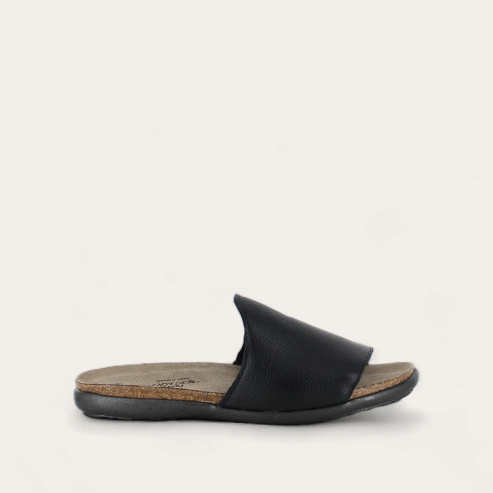 The Naot Skylar is the perfect everyday slip on sandal, with hidden gore for adjustability. Naot's anatomic cork and latex footbed is wrapped in a pampering suede and molds to the shape of the foot with wear. The Flat Elegant Collection features a .75" TPR sole.