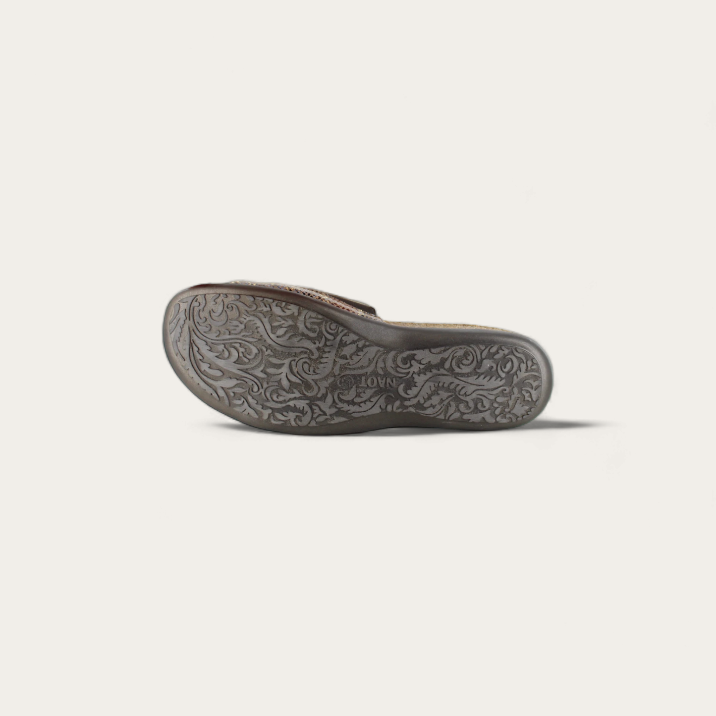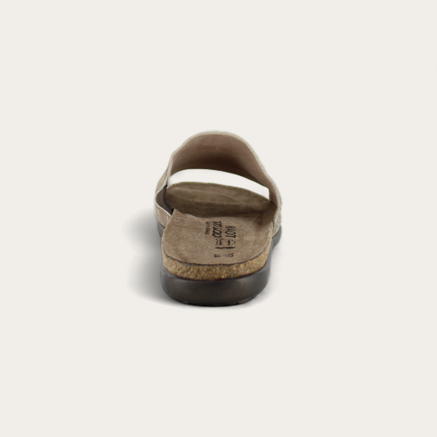 The Naot Skylar is the perfect everyday slip on sandal, with hidden gore for adjustability. Naot's anatomic cork and latex footbed is wrapped in a pampering suede and molds to the shape of the foot with wear. The Flat Elegant Collection features a .75" TPR sole.