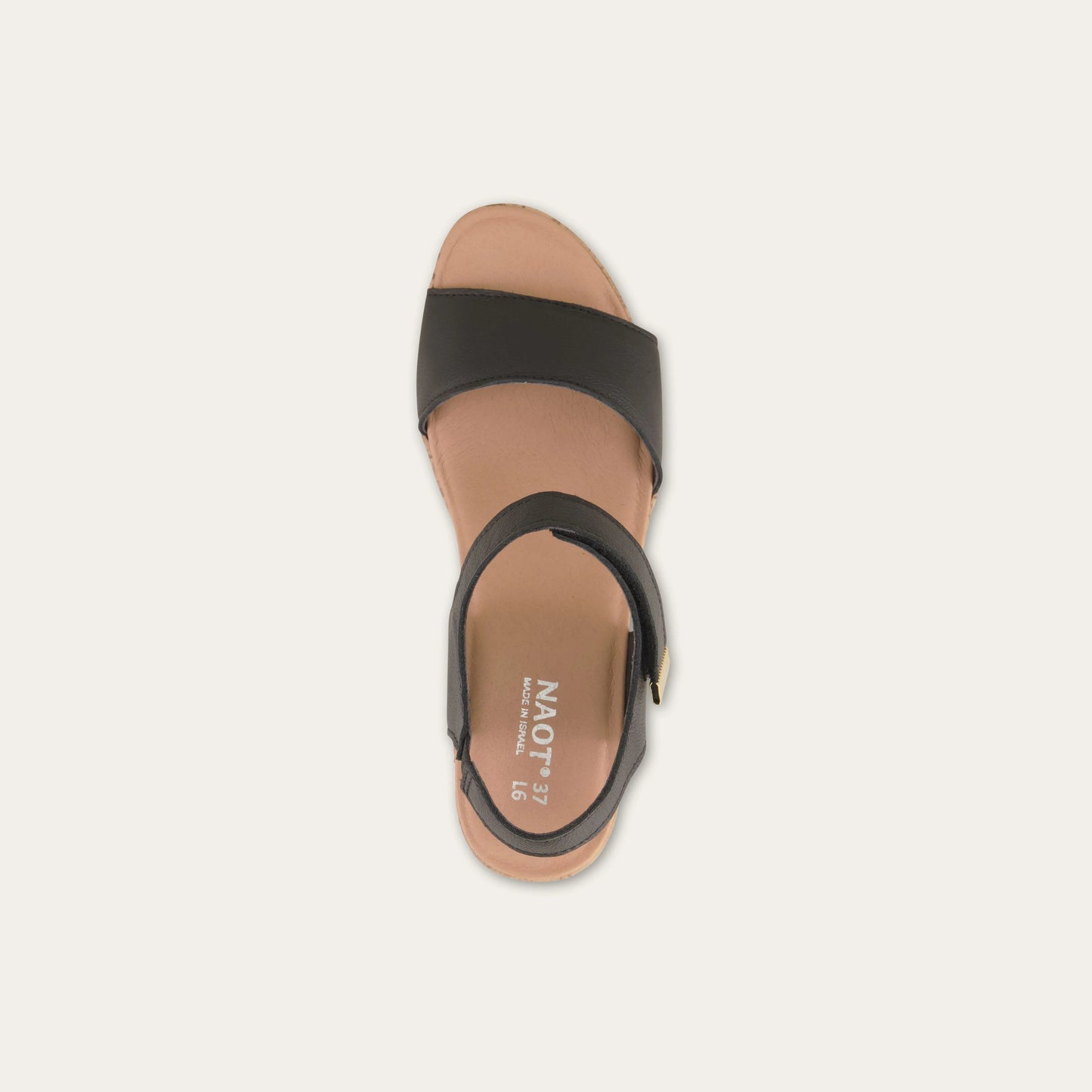 Elevate your style with Naot Summer and its extra comfy, bold platform wedge sandal. It offers a hook and loop strap that provide adjustability. Naot's anatomic cork and latex footbed is wrapped in pampering suede and molds to the shape of the foot with wear. The Resort Collection features a TPR sole, it offers the look of a 2.75 inch wedge without the feel.