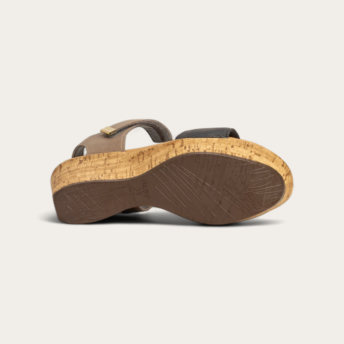 Elevate your style with Naot Summer and its extra comfy, bold platform wedge sandal. It offers a hook and loop strap that provide adjustability. Naot's anatomic cork and latex footbed is wrapped in pampering suede and molds to the shape of the foot with wear. The Resort Collection features a TPR sole, it offers the look of a 2.75 inch wedge without the feel.