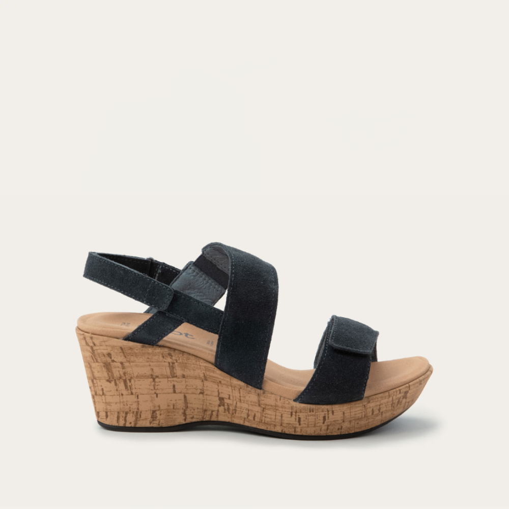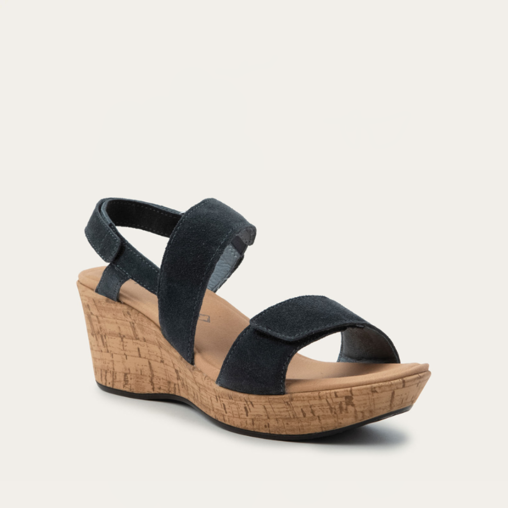 Introducing Sunrise - your new go-to for effortless style and ultimate comfort. With its hook and loop backstrap, and front strap, along with gore, this wedge offers a secure fit and easy adjustability. The strappy design and wedge sole provide the perfect balance of fashion and function. Crafted with Naot's anatomic cork and latex footbed wrapped in smooth leather, these shoes mold to the shape of your foot with wear, ensuring personalized comfort. The Resort Collection's TPR sole offers the look of a 2.75-inch wedge without the discomfort, providing both style and stability with every step.