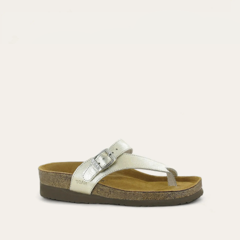 "The Tahoe is a classic everyday slide. This sandal features a buckle closure at the instep and a toe loop to help hold your foot in place when walking. Naot's anatomic cork and latex footbed is wrapped in a pampering suede and molds to the shape of the foot with wear. The Classic Collection features a 1.25" EVA sole.