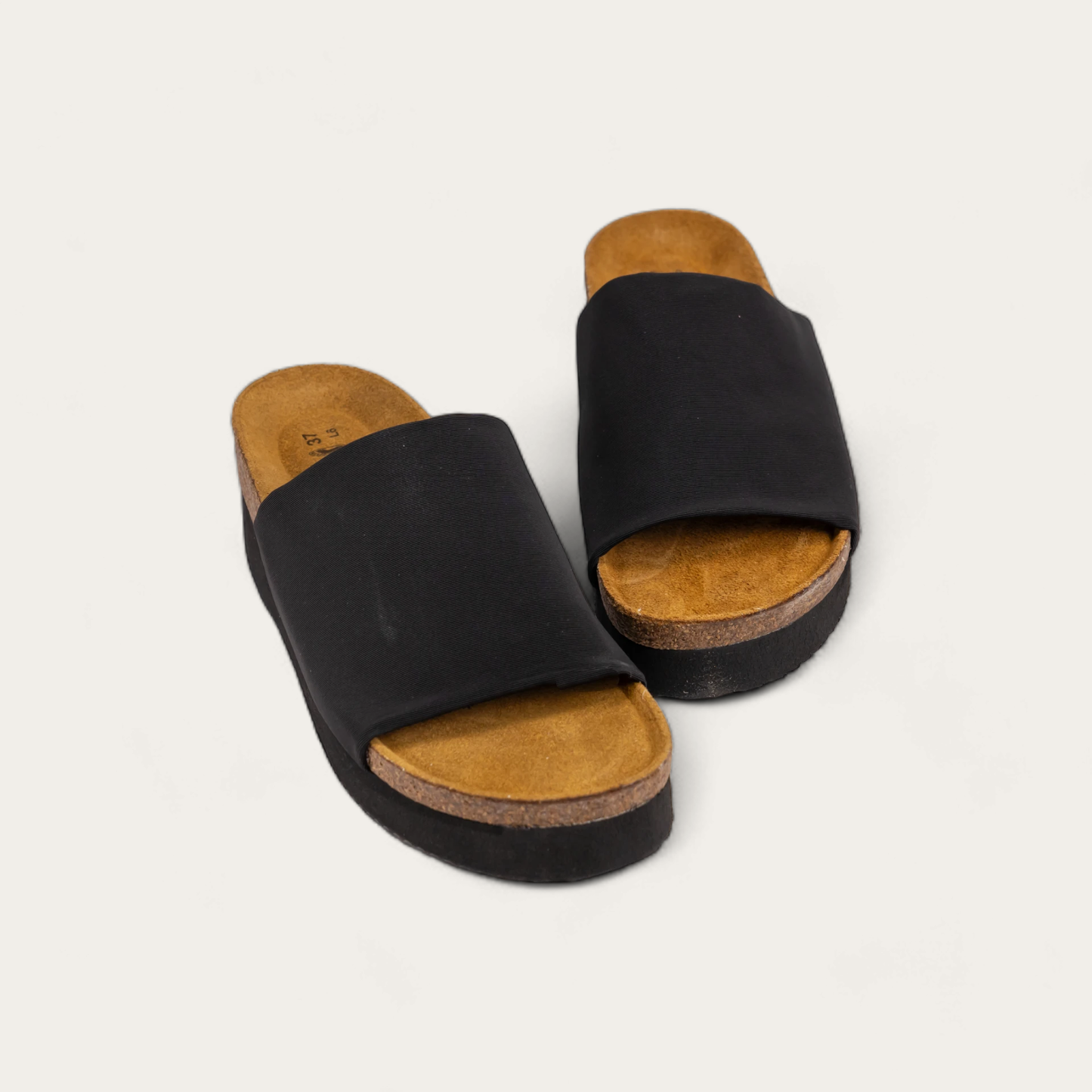 The Tampa is a stretch slide sandal. Naot's anatomic cork and latex footbed is wrapped in a pampering suede and molds to the shape of the foot with wear. The Highrise Collection features a 1.75" EVA sole.