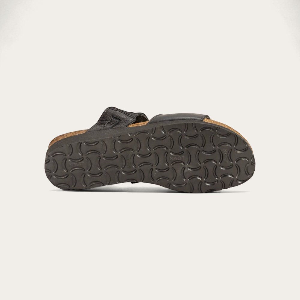 The Victoria is a versatile slide sandal to go from day to night, featuring a bold chain. Naot's anatomic cork and latex footbed is wrapped in a pampering suede and molds to the shape of the foot with wear. American Podiatric Medical Association (APMA) Accepted for promoting good foot health.