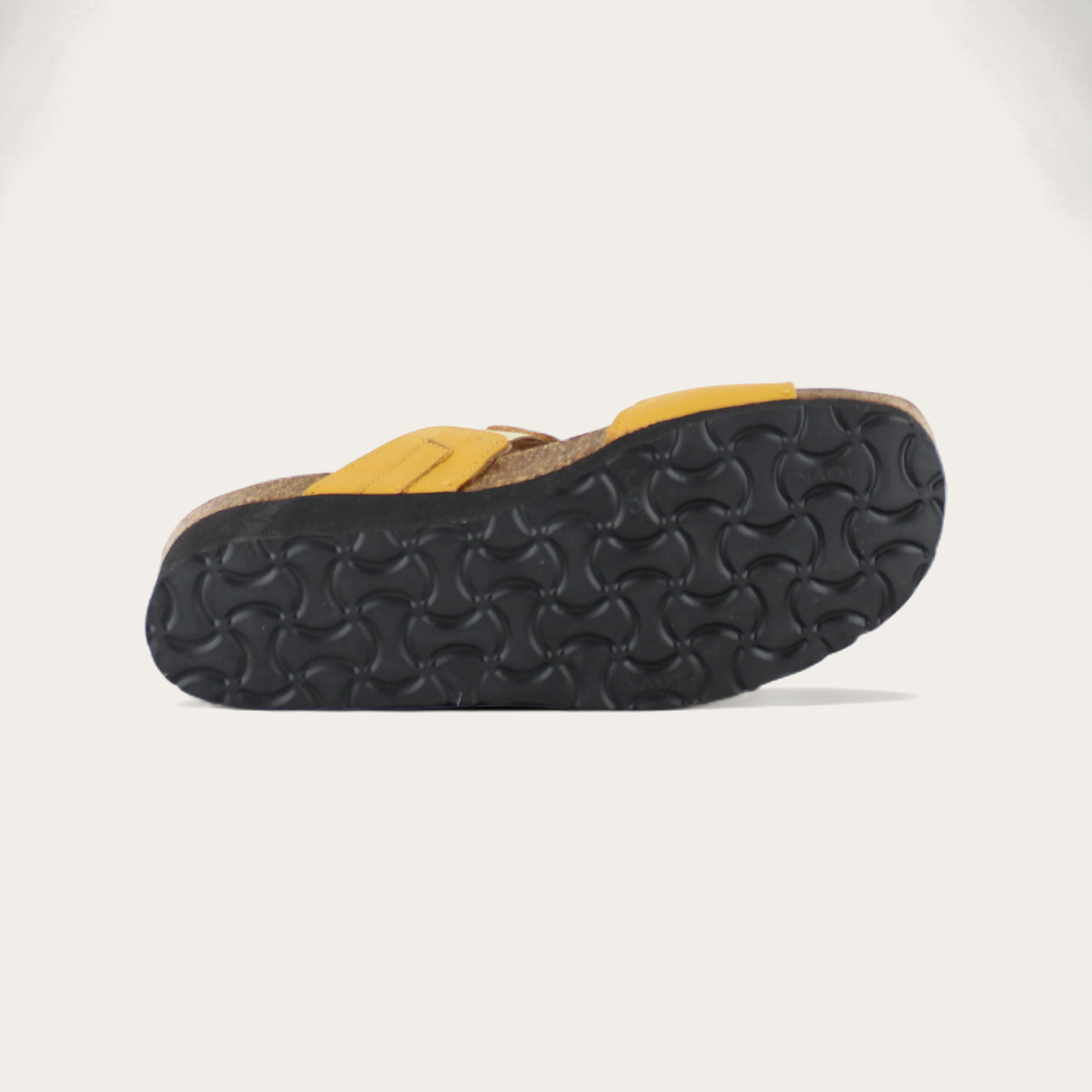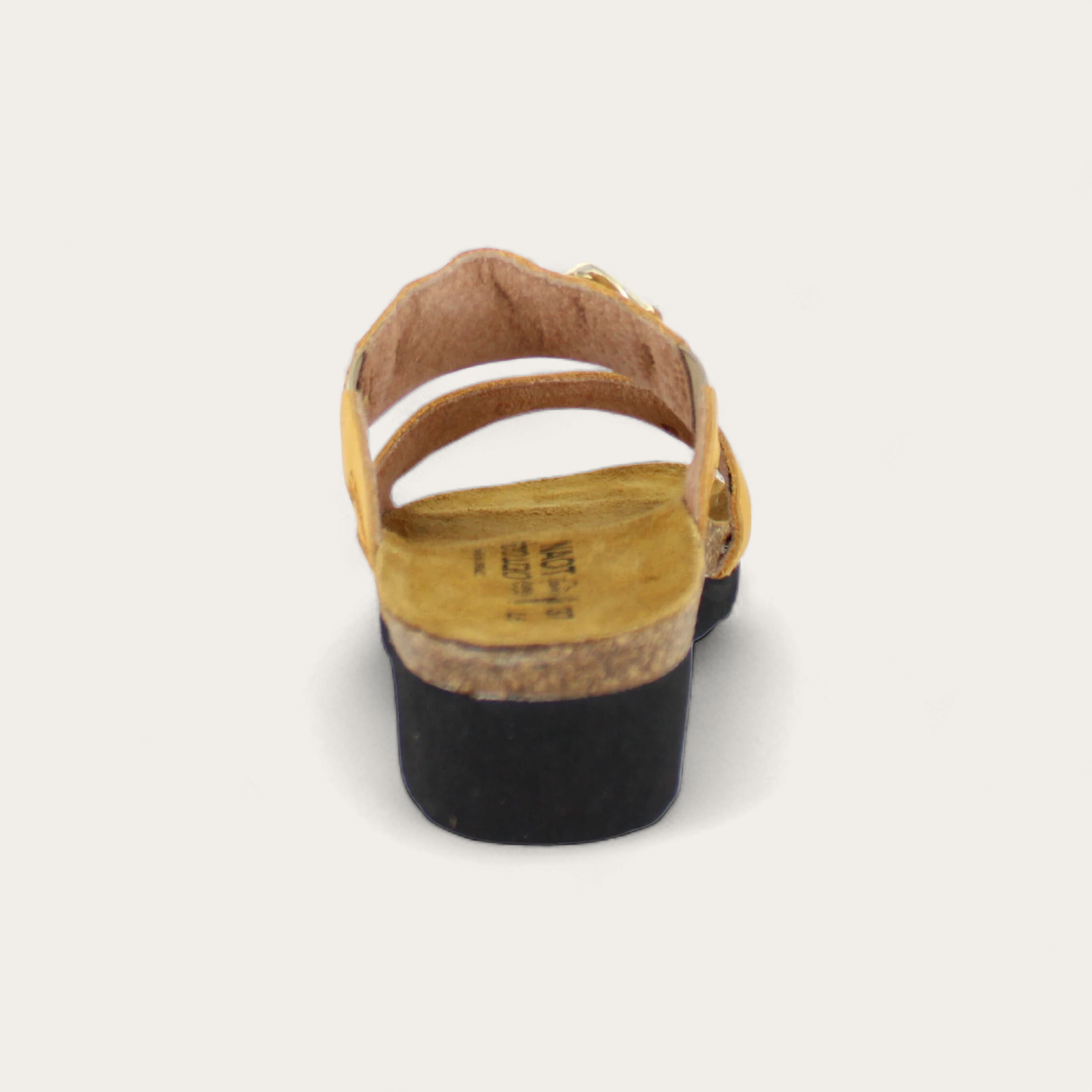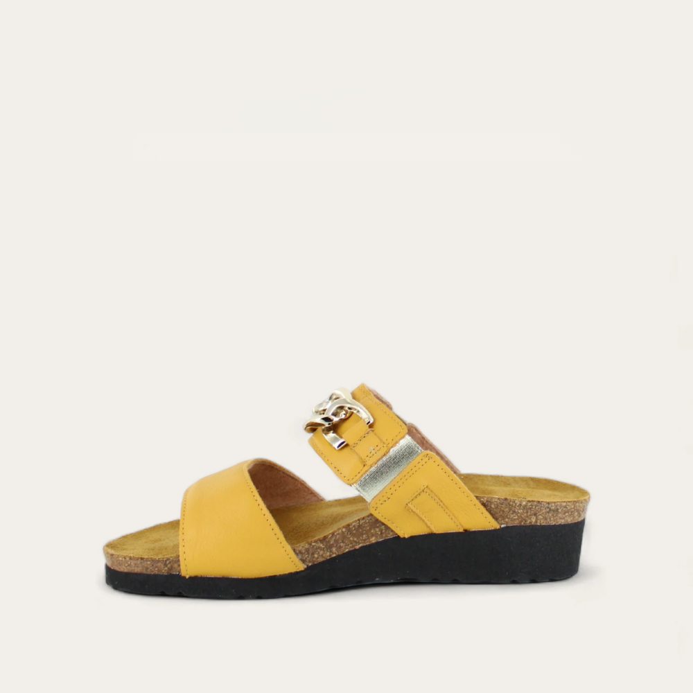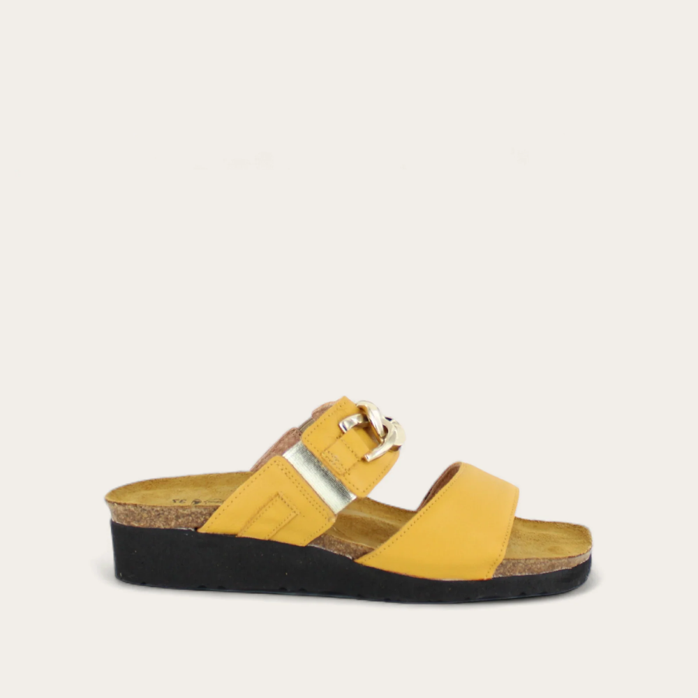 The Victoria is a versatile slide sandal to go from day to night, featuring a bold chain. Naot's anatomic cork and latex footbed is wrapped in a pampering suede and molds to the shape of the foot with wear. American Podiatric Medical Association (APMA) Accepted for promoting good foot health.