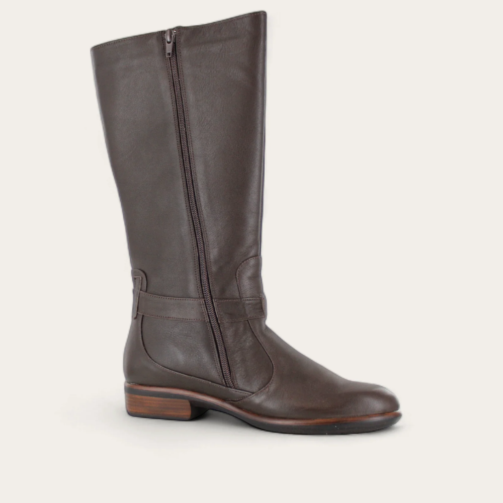 The Naot Viento is an upper calf boot with an inside zipper. This style has a heel cup for stability and support. Naot's removable, anatomic cork and latex footbed is wrapped in microfiber and leather and molds to the shape of the foot with wear. Our patented Naot Replacement Footbeds are available for Viento.