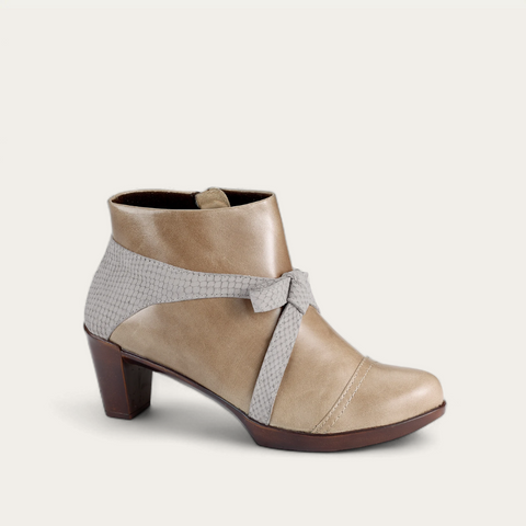 The Vistoso is the perfect bootie that offers a zipper for accessibility. This style has a slightly padded heel cup for support and extra comfort. Naot's anatomic cork and memory foam footbed is wrapped in leather and microfiber and molds to the shape of the foot with wear. This collection uses a hand-sewn Strobel construction making it strong and extremely flexible. The Prima Bella Collection features a 2 3/4" polyurethane sole with a metal shank. Our patented Naot Replacement Footbeds are also available for Vistoso.