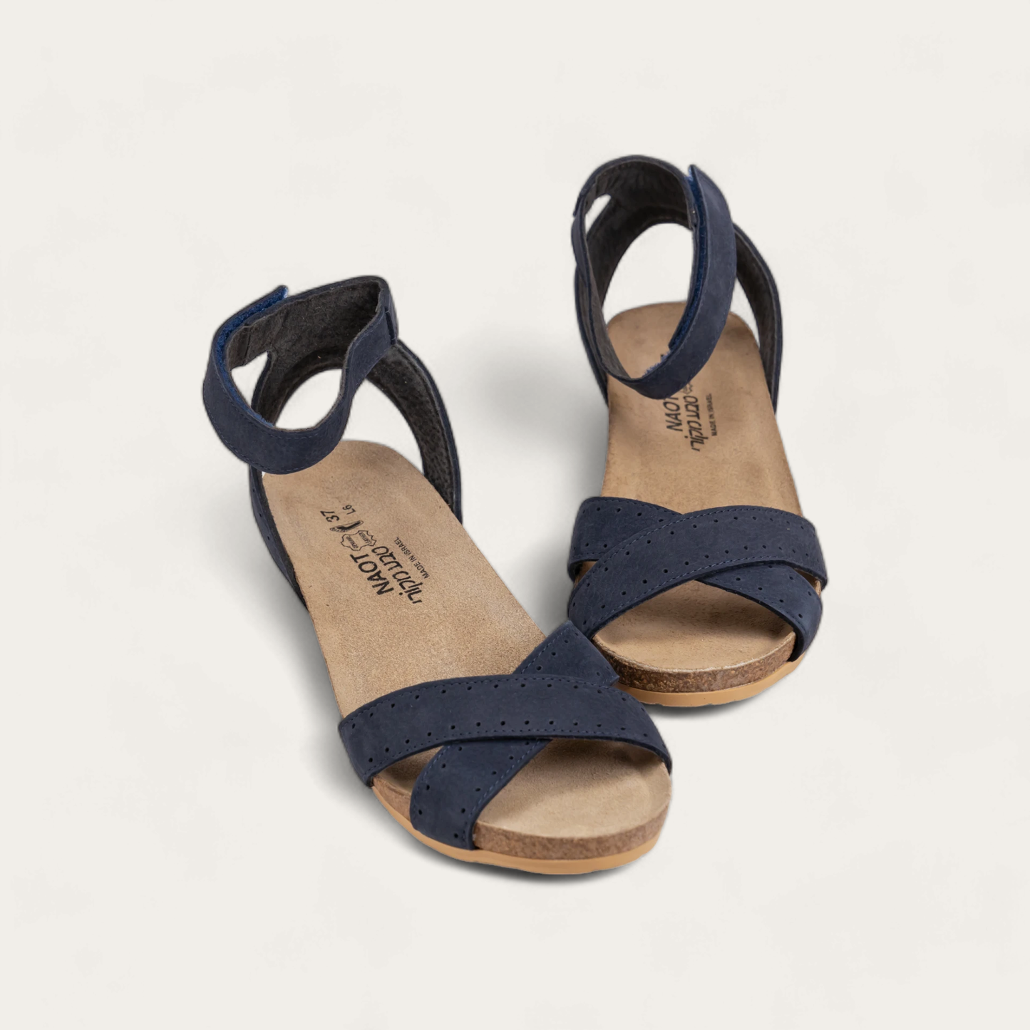 With stylish circular cutouts backed with a subtle underlay, the Wand sandal will have you feeling stylish while walking in comfort. Naot's anatomic cork and latex footbed is wrapped in a pampering suede and molds to the shape of the foot with wear.